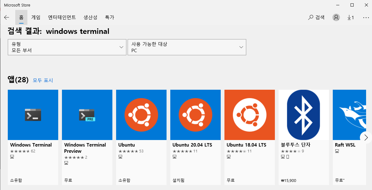 마이크로소프트 스토어에 들어가서 "Windows terminal"를 검색합니다.