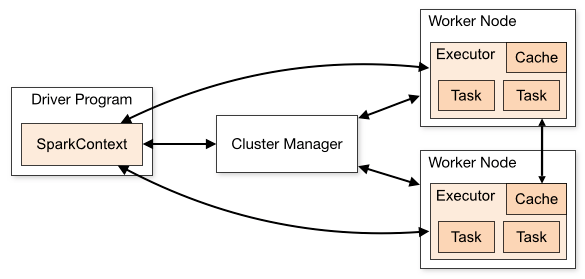 - 스파크는 익스큐터를 실행하기 위해 클러스터 매니저에 의존 (Standalone, Hadoop Yarn, Apache Mesos)