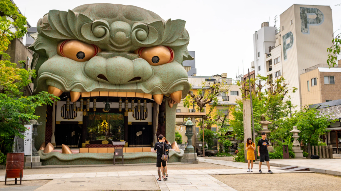 난바 야사카 신사 – 거대한 사자머리 포토존